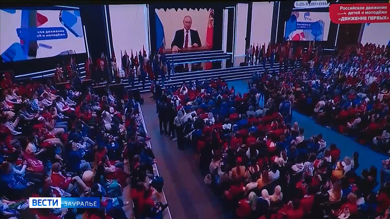 Открытие первичного отделения было торжественным. Началось мероприятие с исполнения гимна России. В зале собрались ученики курганских школ. Они посмотрели видео о том, как в декабре прошлого года в Москве прошел первый съезд Российского движения детей и молодежи. Поговорили участники собрания и о социальных проектах. А председатель регионального отделения "Движение первых" рассказал чем будут заниматься участники новой организации и с кем сотрудничать.