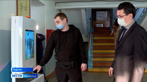 Общество - В Курганской школе установили аппарат, который распознаёт лица и дезинфицирует руки